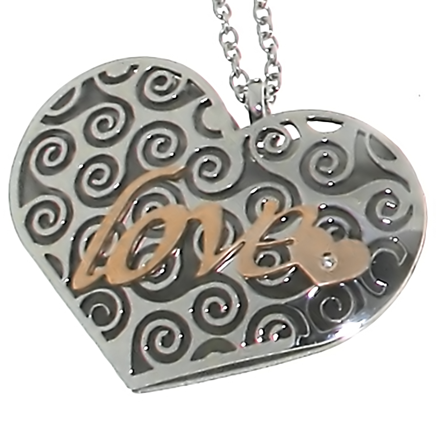 Amour Heart Pendant on Black Cord in 2-Tone Italian Stainless Steel